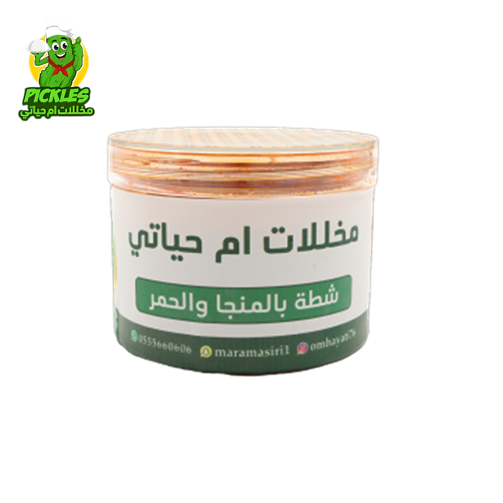 اكتشفي نكهة غير تقليدية تُجسد مزيج الطعم الحلو والحار والحامض في منتج واحد! شطة بالمنجا والحمر هي تجربة جريئة تمزج بين طراوة المنجا، لذعة الحمر، وحرارة الفلفل، لتمنحك إضافة مثالية للمائدة. طعم يأسر الحواس ويمنح كل وجبة لمسة مميزة لا تُنسى من مخللات أم حياتي .