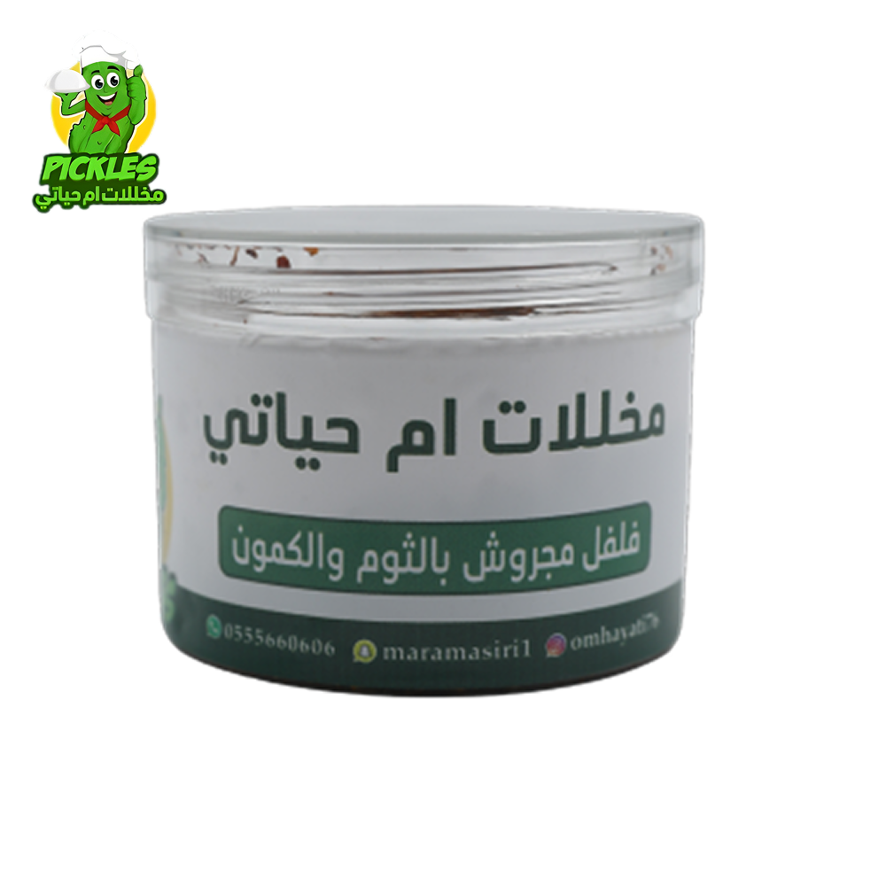 - اسم المنتج: فلفل مجروش بالثوم والكمون